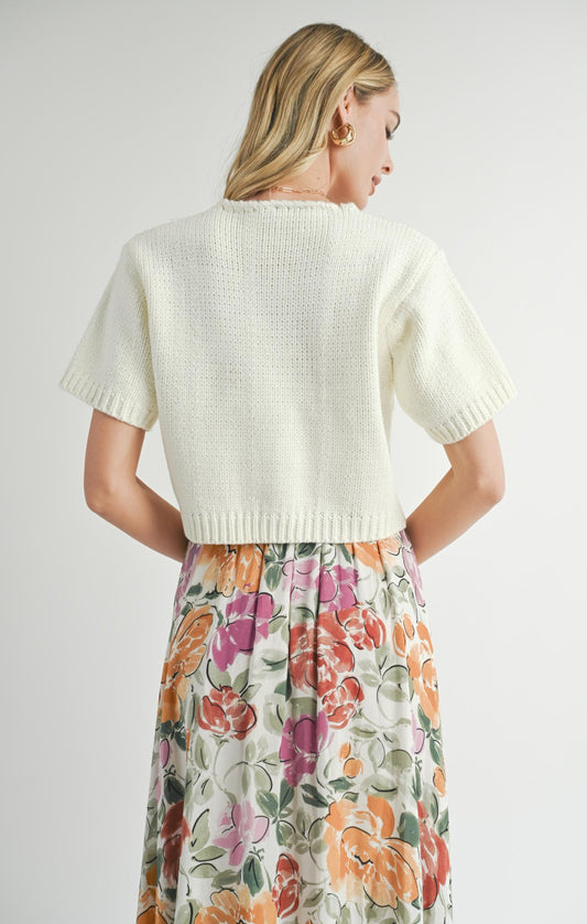 Sadie & Sage Coco Buttoned Short Sleeve Sweater