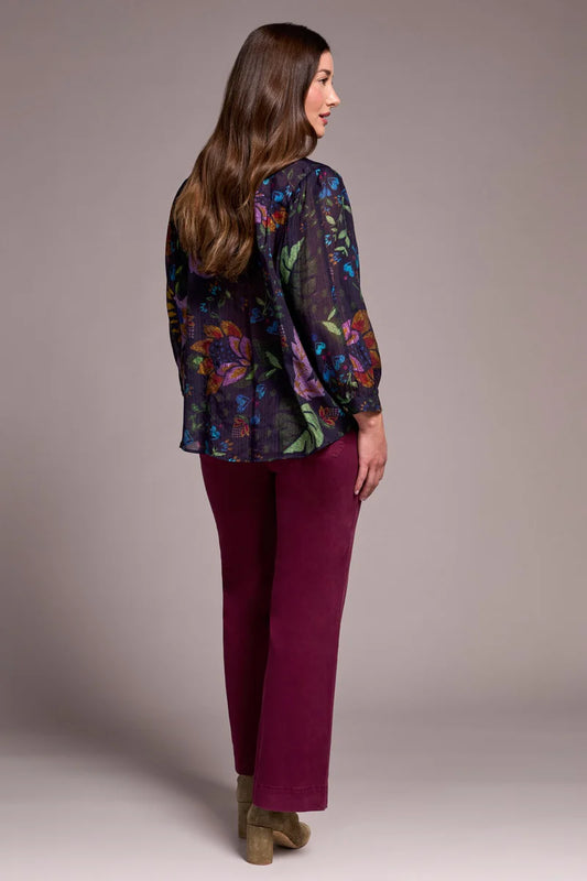 Tribal Flowy Dolman Sleeve Blouse With Self-Covering Buttons