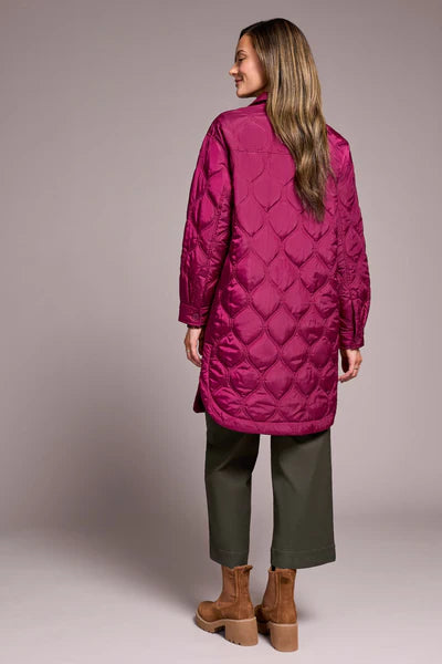 Tribal Long Quilted Button-Up Jacket With Pockets