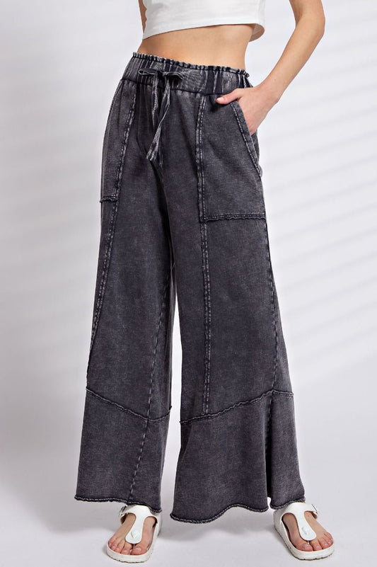 Easel Animal Print Terry Knit Mineral Washed Pants