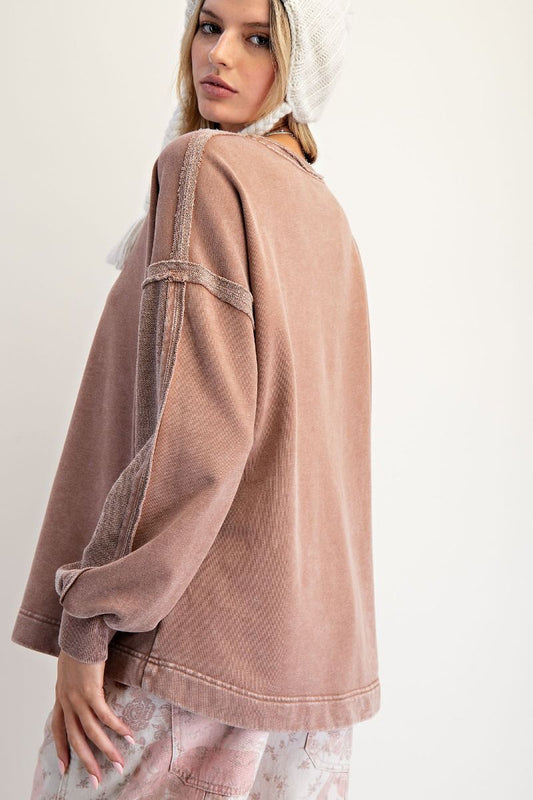 Easel Mineral Washed Rib Knit Hoodie Pullover