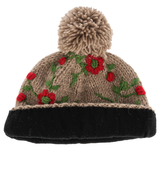 Embroidered Beanie Hats With Pom-Pom