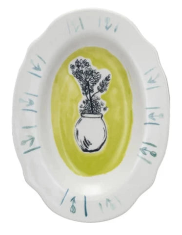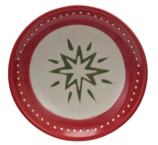 Hand-Painted Stoneware Plate With Flowers & Scalloped Edge