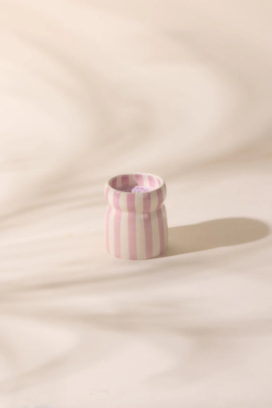 Cabana Lavender Striped Ceramic Candle - Grecian Sand