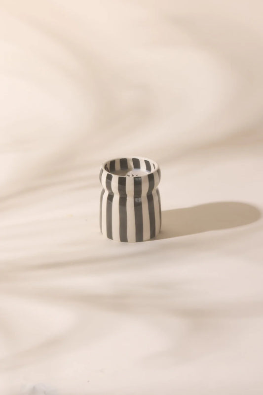 Cabana Black Striped Ceramic Candle - Lava Stone
