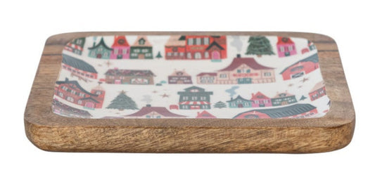 Enameled Mango Wood Trays with North Pole Patterns