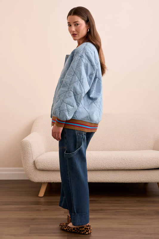 Tribal Blue Thread Oversized Cotton Quilted Bomber Jacket