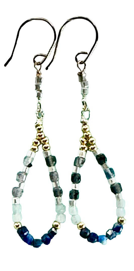 Gold Diamond Earrings With Blue Lace Agate And Sunstone