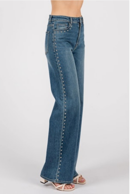 L.T.J. Aria Wide Leg Jeans with Studs