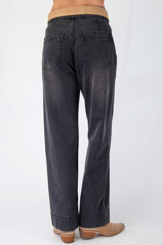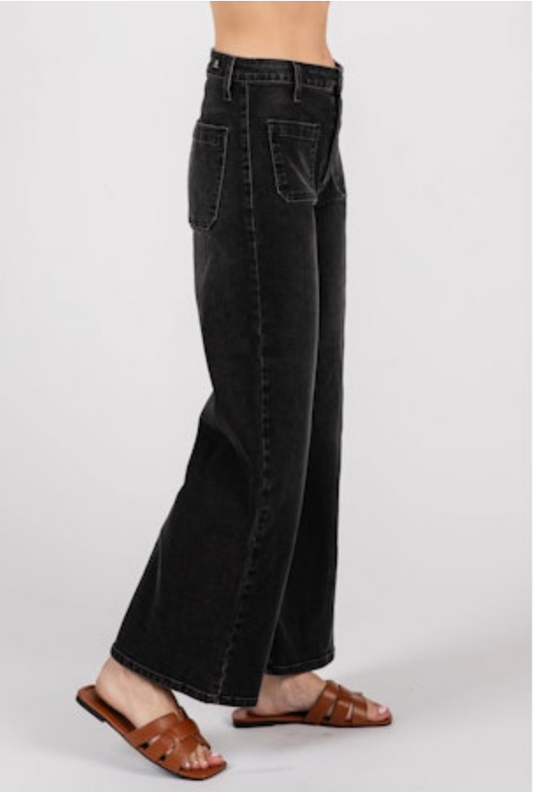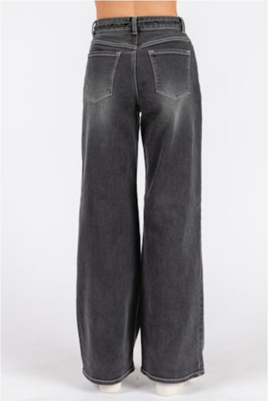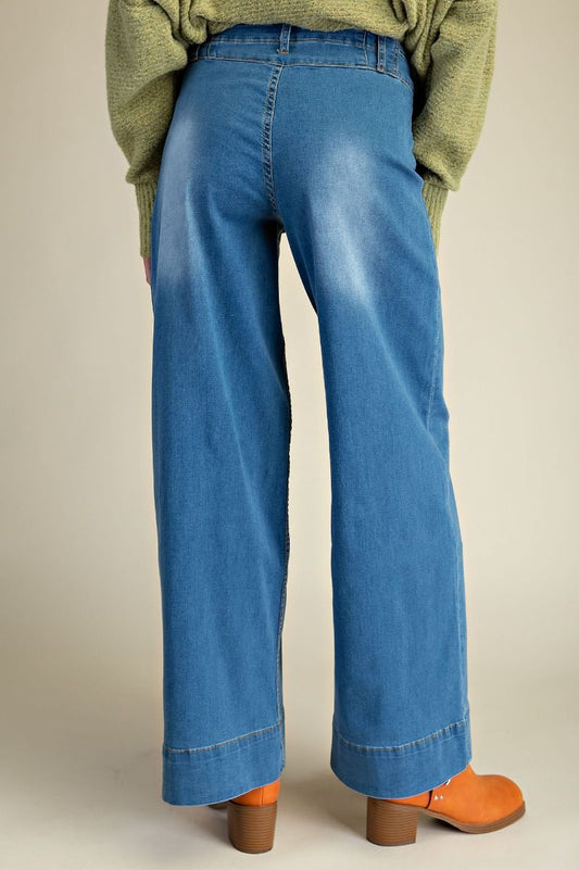 Easel Wide Leg Washed Denim Pants
