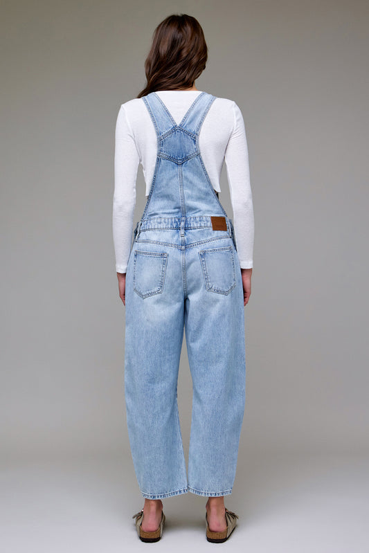 Hidden Light Wash Classic Barrel Cropped Overall