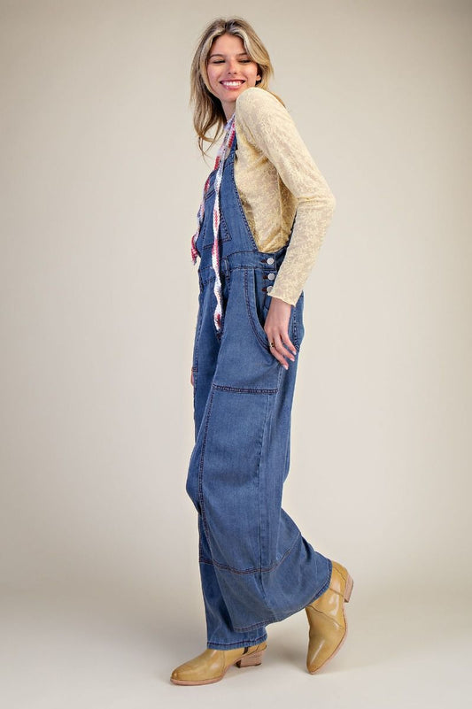 Easel Washed Denim Jumpsuit