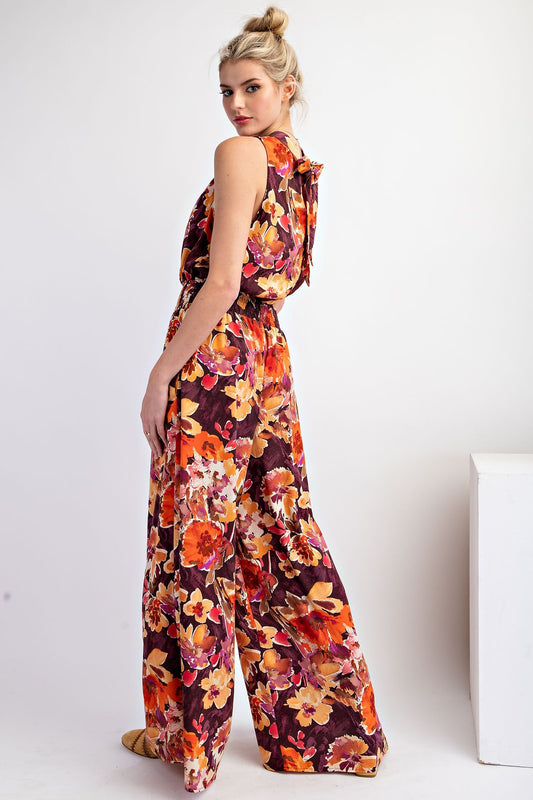 Easel Printed Mirabelle Satin Romper Pants