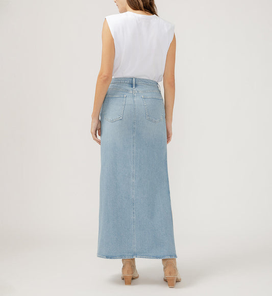 Silver Side Split Denim Maxi Skirt