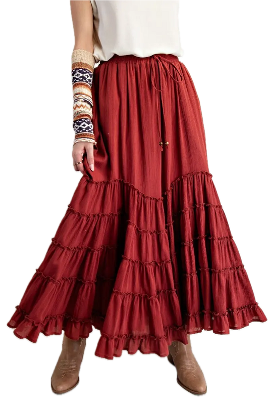 Easel Cotton Gauze Tiered Maxi Skirt
