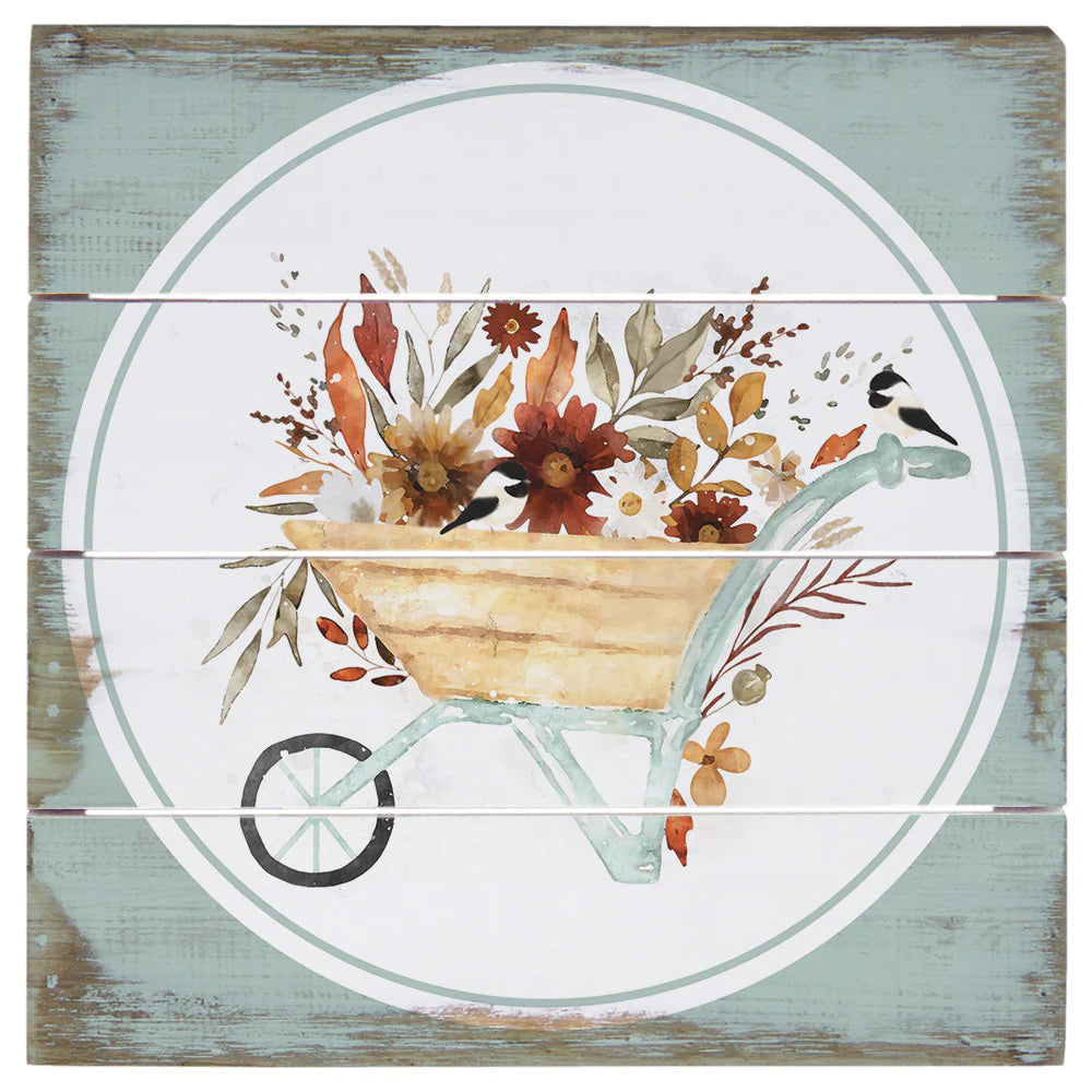 The Fall Floral Wheelbarrow is a unique, handmade slotted board crafted from cedar wood, ensuring each piece has its own natural charm. Measuring 6" x 6" x 1", it can be displayed by hanging from its deep lip or positioned on a tabletop or shelf, adding a warm, seasonal touch to your home. Lightweight and versatile, this design is proudly crafted and printed in the USA by Sincere Surroundings, perfect for welcoming autumn with style and authenticity.