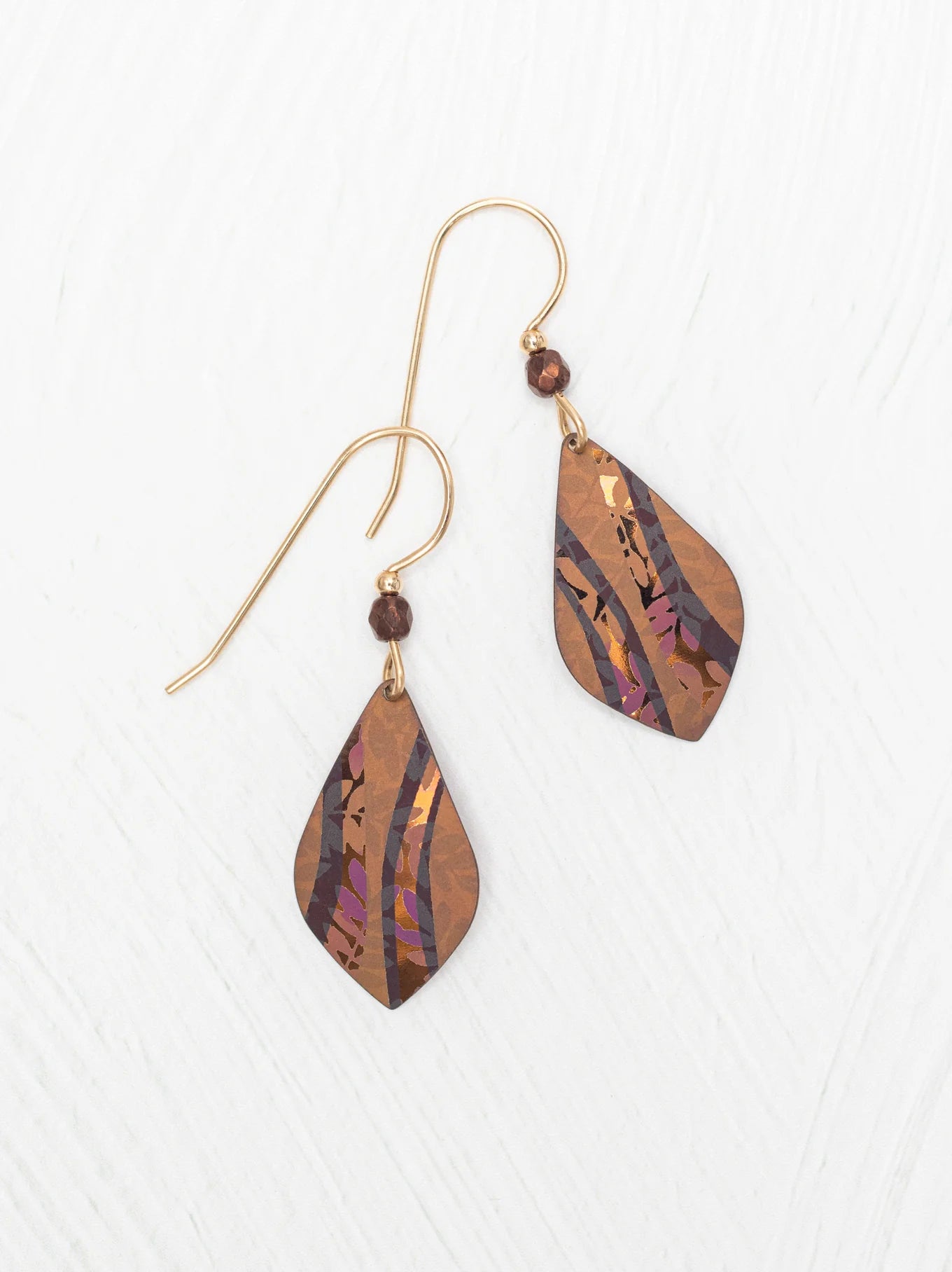 For the fashionista, fauna lover, or anyone who appreciates fine design, the Riverwind Earrings offer elegance and simple styling for everyday wear. Waves of color and leaves on the vine complement each other in the most captivating way. A single crystal bead tops off its botanical beauty with a spark of brilliance.