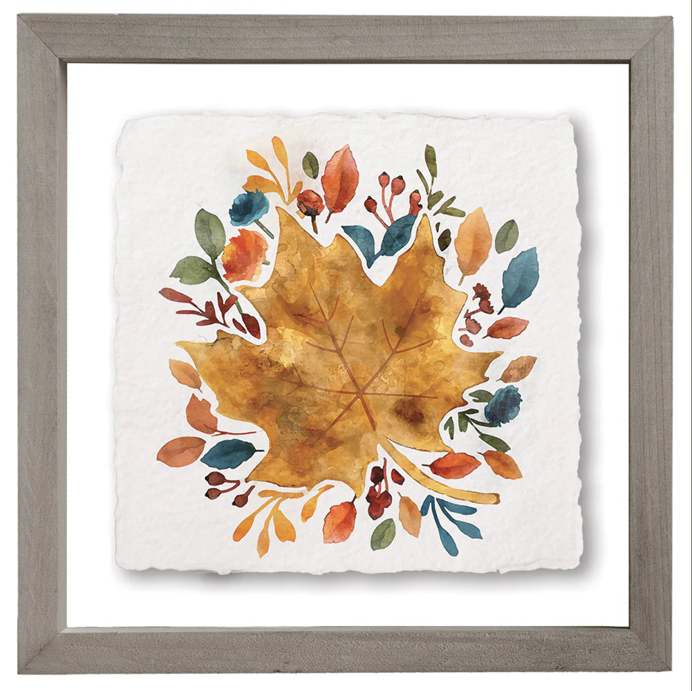 Crafted with a solid wood frame, this Jewel Tone Leaf Art beautifully showcases an elegant design on paper mâché, securely encased between two pieces of clear plexiglass. Its sturdy 10" x 10" x 1.5" frame allows for versatile display options—whether on a tabletop or hung on a wall. Lightweight at just 20 oz, this striking piece adds a touch of color and sophistication to any space. Proudly designed, printed, and made in the USA by Sincere Surroundings, it combines quality craftsmanship with timeless style.