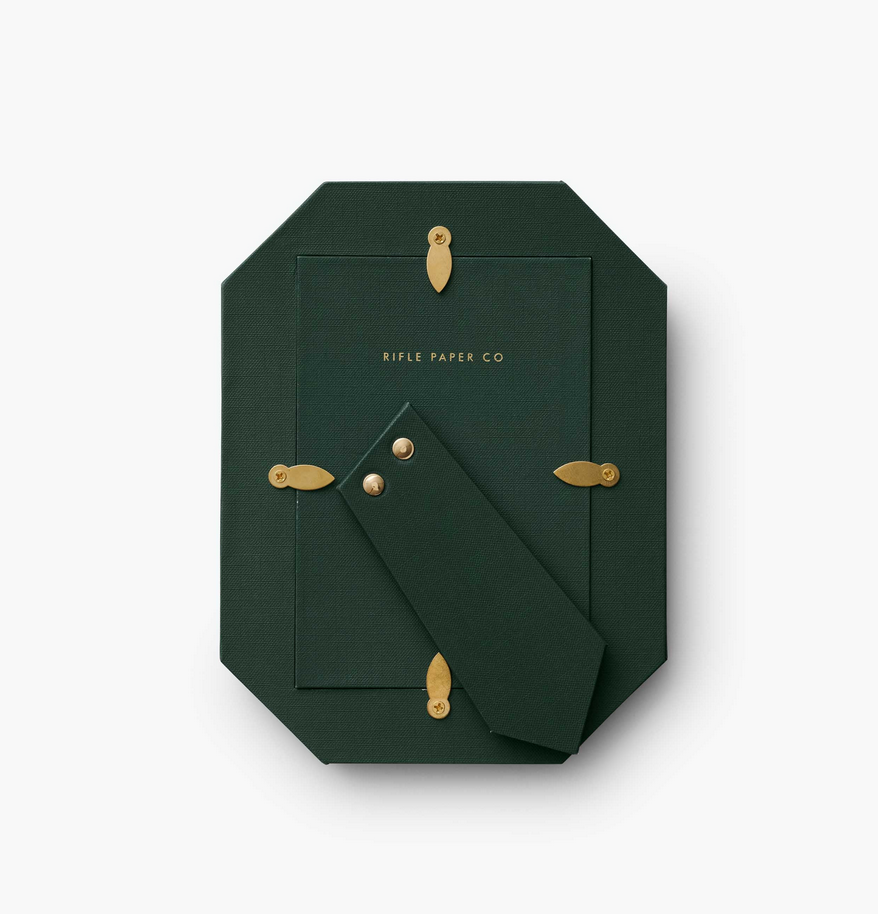 Your memories, framed by flowers. An octagonal paper-wrapped frame for a 4x6 photo with illustrated designs, a metallic gold photo mat, and a kickstand for display.