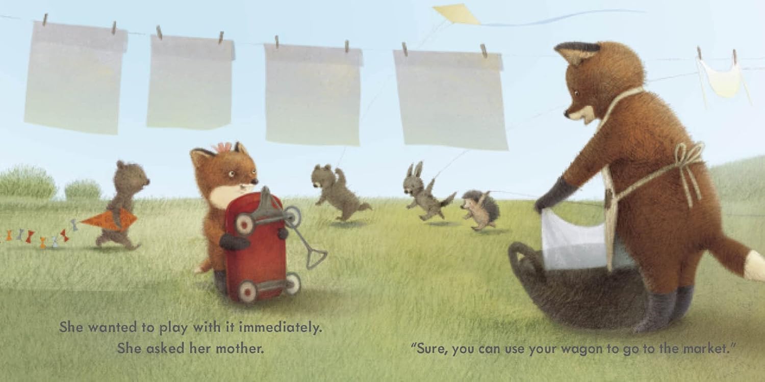 All Lucy wants to do is play with her brand-new, bright red wagon. But her mother has other plans for her-and the wagon. Lucy must go to the market and buy vegetables for dinner. Lucy doesn't want to do chores! But she sets off for the market nonetheless, hauling her red wagon with her. Before long, her ordinary trip becomes a high-seas adventure, a ride through outer space, and a day at the circus. As long as she has her red wagon, not even chores can get in the way of Lucy's fun.