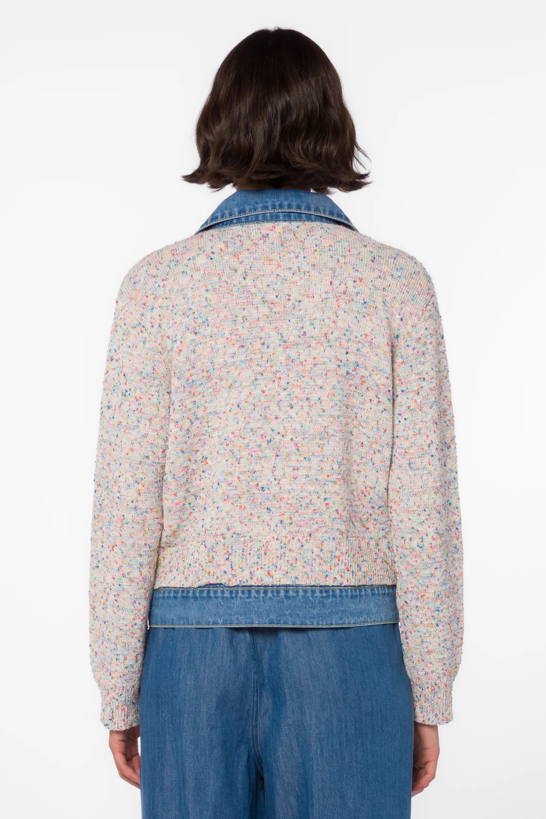 The Velvet Heart Francis Jacket blends timeless style with everyday comfort. This mixed media button-up features a striking multi-pastel color palette that effortlessly elevates any wardrobe. Crafted from 100% cotton in a medium weight soft fabric, it offers the perfect balance of structure and comfort. The denim collar adds an edgy touch, while full front metal shank buttons provide secure closure. Practical lower front patch pockets keep essentials within reach, and long ribbed sleeves ensure a polished fit. Whether layered over basics or worn as a statement piece, this versatile jacket delivers both personality and function.