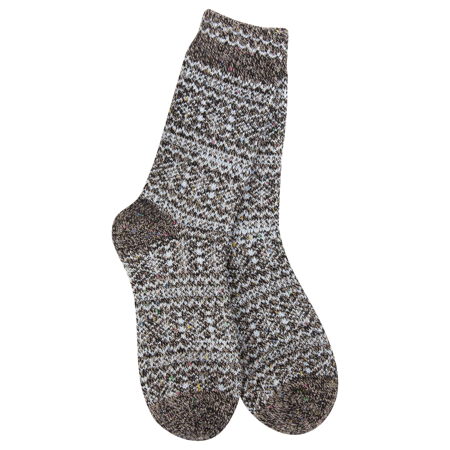 Cozy up by the fireplace with our Holiday collection! The Holiday Confetti Crew showcases a cheerful holiday pattern, perfect for gifting as stocking stuffers. Designed to fit most women’s shoe sizes 6-10 comfortably. Made from a blend of 51% polyester, 30% acrylic, 5% nylon, and 2% spandex for a snug, soft feel.