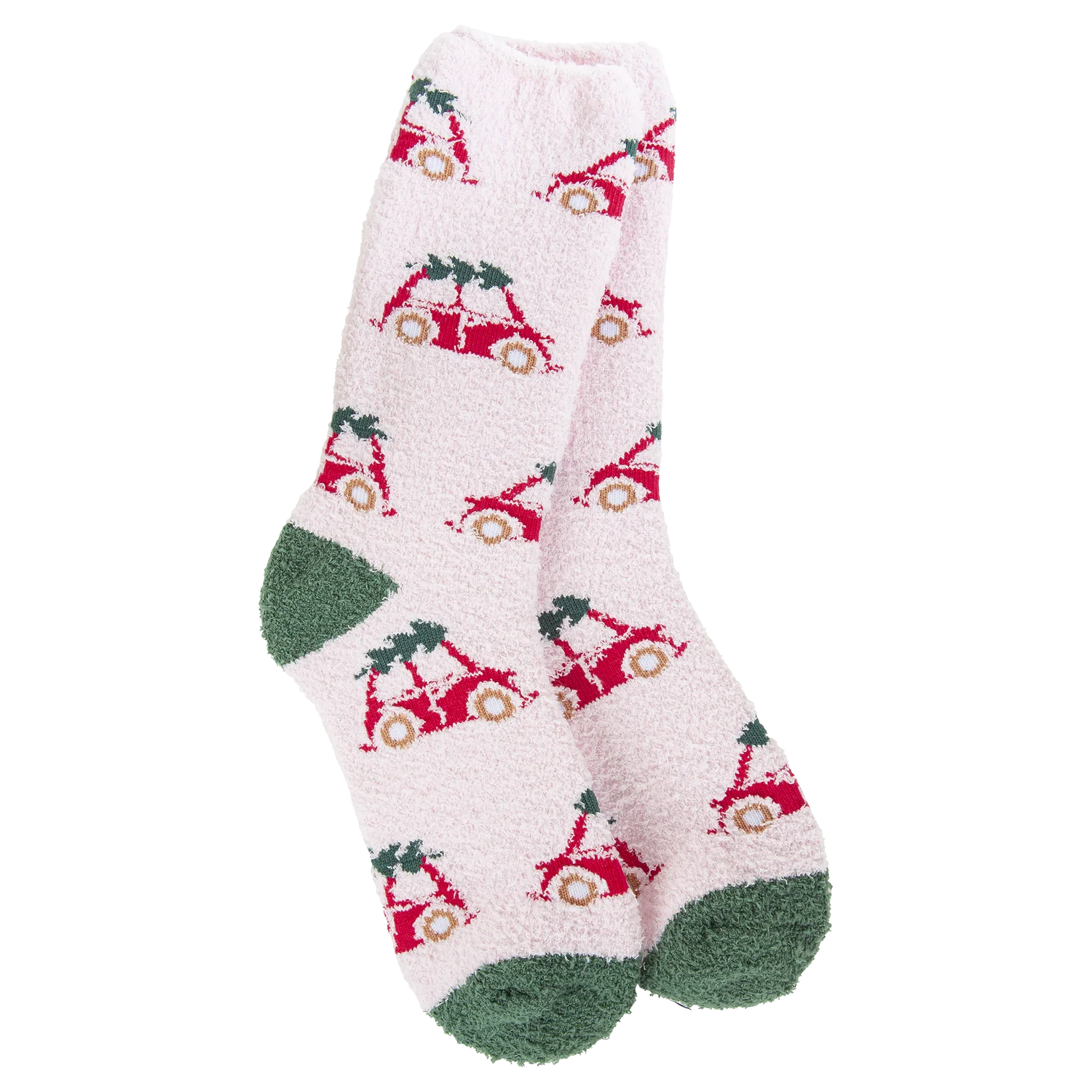 Experience the ultimate comfort with the World's Softest Holiday Cozy Crew. Crafted from a plush blend of 99% polyester and 1% spandex, these socks offer a snug, luxurious feel perfect for relaxing or gifting. Designed to fit most women's shoe sizes 6–10, they combine softness with a stylish festive touch, making every step cozy and cheerful throughout the holiday season.